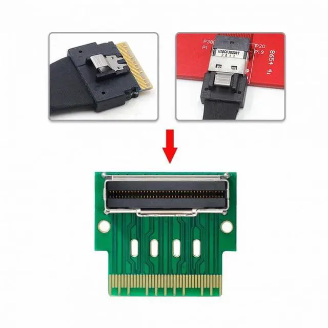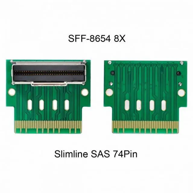 • PCI-E Slimline SAS 4.0 SFF-8654 8i 74pin to SFF-8654 74pin Male to Female Extender Adapter Angled Test Tools
