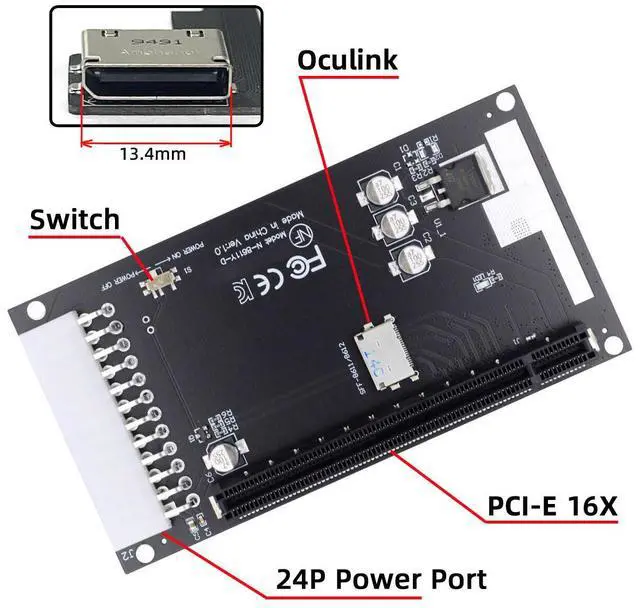 • 4x Oculink SFF-8612 SFF-8611 to PCIE PCI-Express 16x Adapter with ATX 24pin Power Port for Mainboard Graphics Card