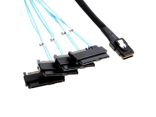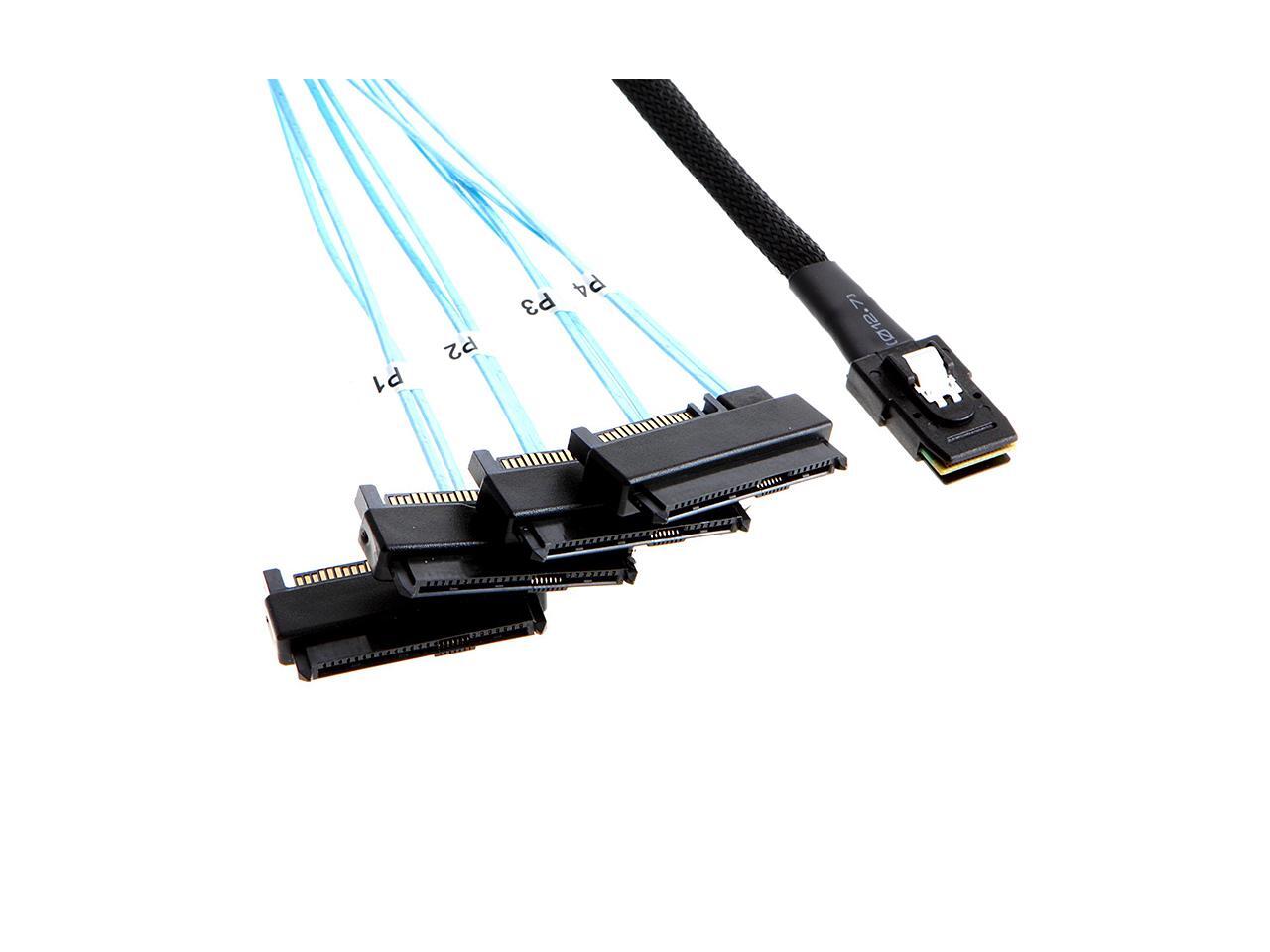 Internal 36 Pin Mini SAS SFF-8087 Host/Controller to 4x SAS 29Pin SFF-8482 Target/Backplane Hard Disk ,Power by SATA 15pin - 1.64FT / 0.5 meter