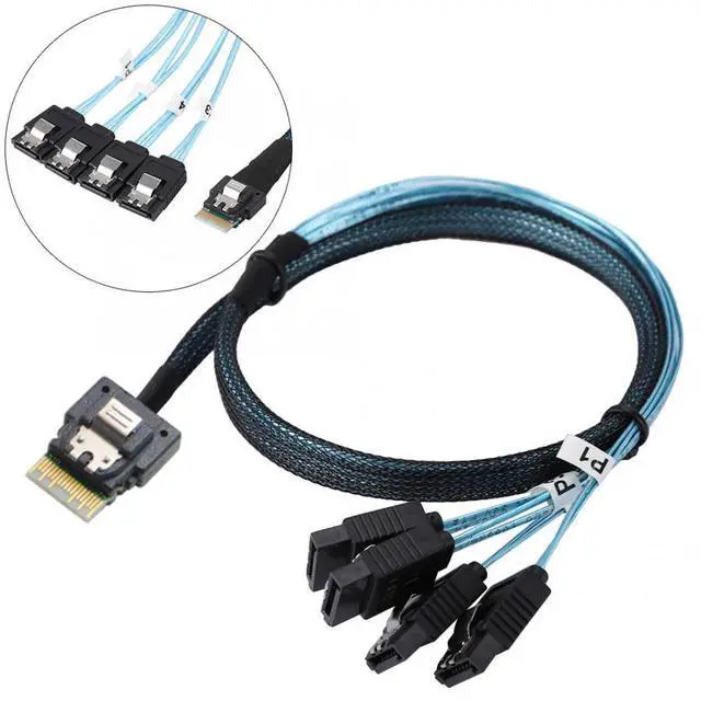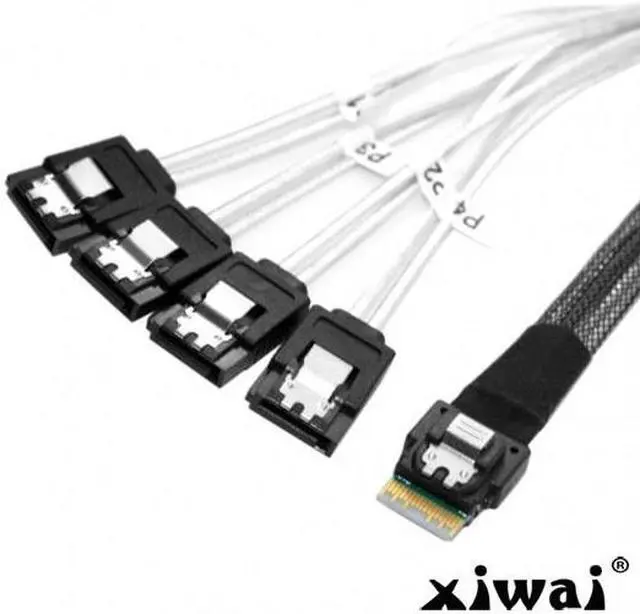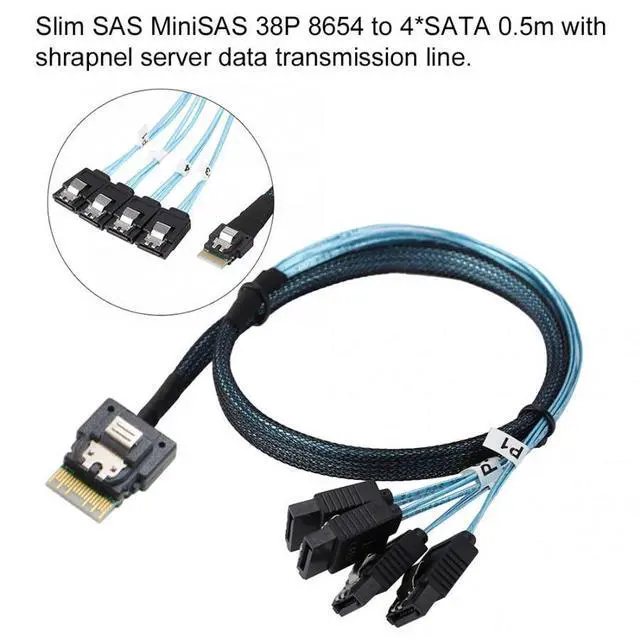 Slim Line SAS 4.0 SFF-8654 4i 38pin Host to 4 SATA 7pin Target Hard Disk Fanout Raid Cable 50cm
