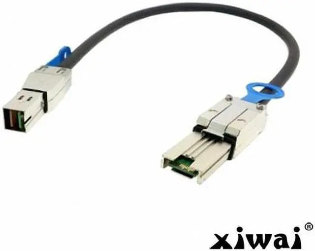HD Mini-SAS cable configurations It is an external Mini Serial Attached SCSI HD x4 (SFF-8644) to Mini Serial Attached SCSI x4 (SFF-8088) cable The High Density (HD) system referenced as HD Mini-SAS (SFF-8644) in the SAS 2.1 standard, meets the 6Gb/s SAS specification. These new HD Connectors will be used on the SAS 3.0 specification when it is released. Cable material may change but the connectors will be the next generation of SAS to run at 12Gb/s. External HD Mini-SAS Copper Cables Length: 50cm