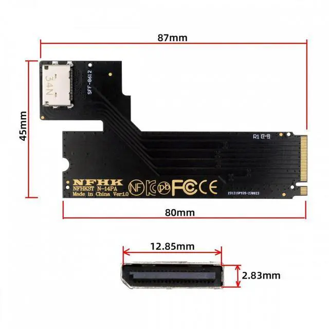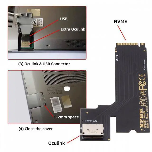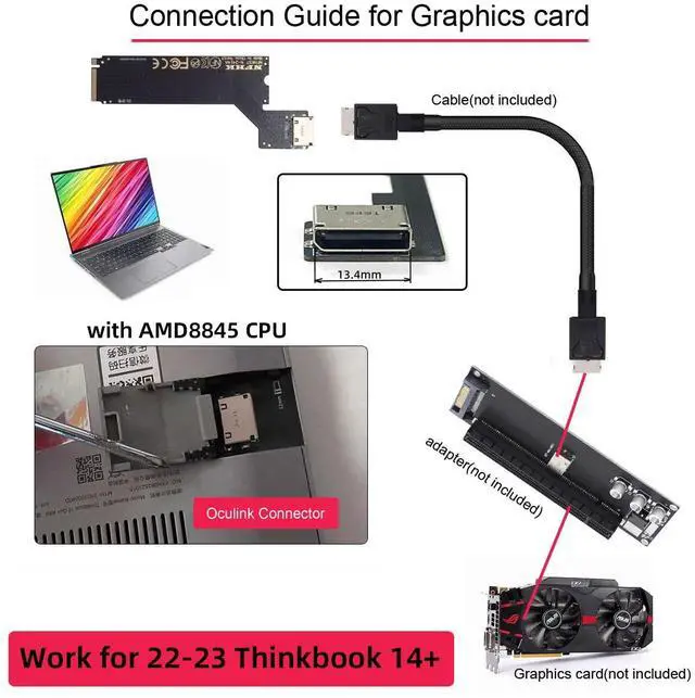 PCI-E 4.0 M.2 M-key to Oculink SFF-8612 SFF-8611 Host Adapter for 2022 2023 ThinkBook 14+ External Graphics Card and SSD