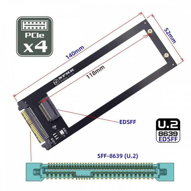 U.2 SFF-8639 Host to PCI-E Ruler 1U GEN-Z EDSFF 9.5mm 15mm 25mm Short SSD E1.S with Heat Sink PM9A3 PM9D3 P5801X Carrier Adapter
