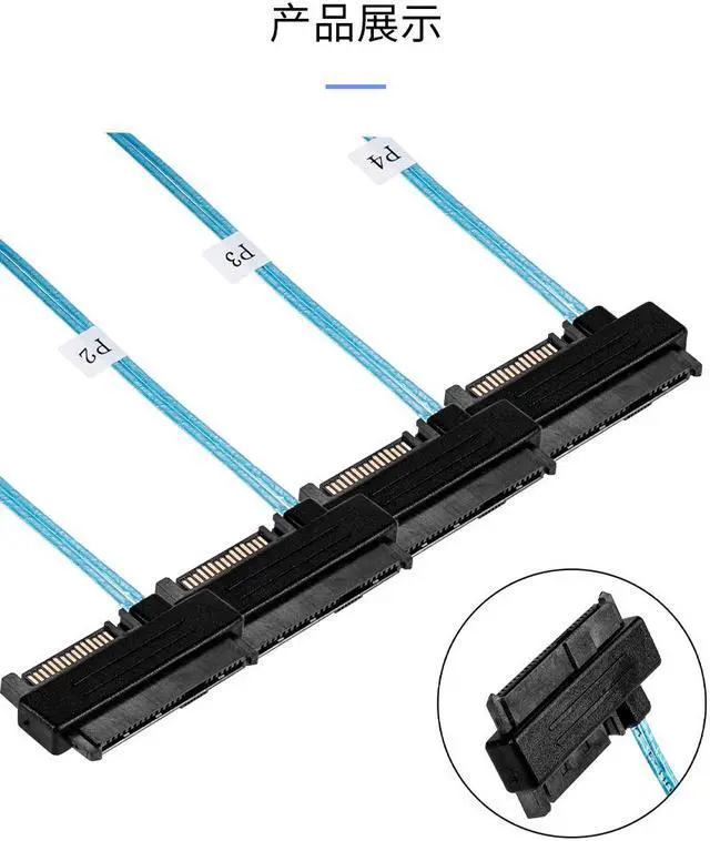 Mini SAS (SFF-8643) connect to the controller, 4 SAS connect to the HDD (Hard Disk Driver)