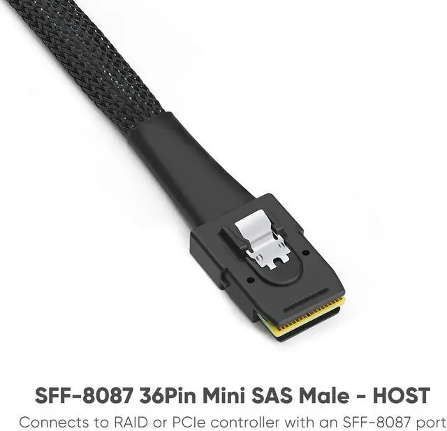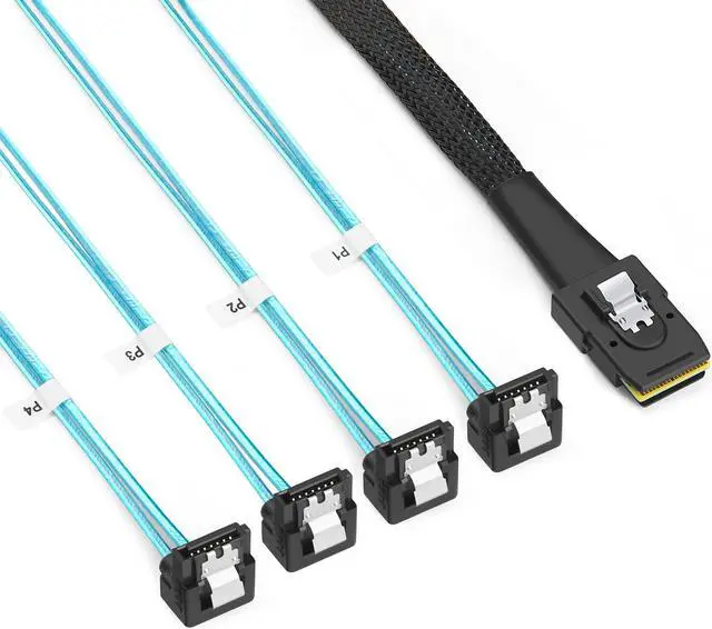 Mini SAS 36 (SFF-8087) Male Connect to the Controller, 4x Angle SATA Connect to the backplane