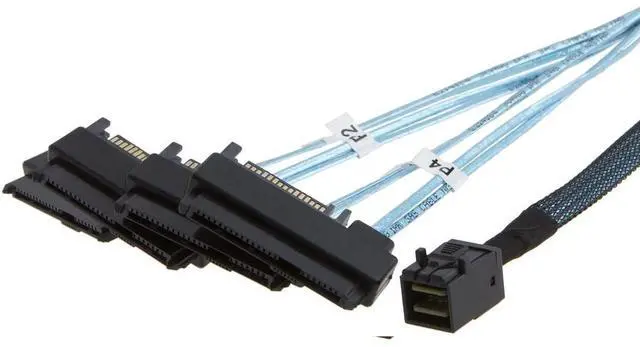 Specifications Side 1: Internal Mini SAS SFF-8643 Side 2: (4) 29pin SFF-8482 connectors with SAS 15pin Power Port Cable: 30AWG Cable Length: 1 Meters Cable Color: Black & Blue.