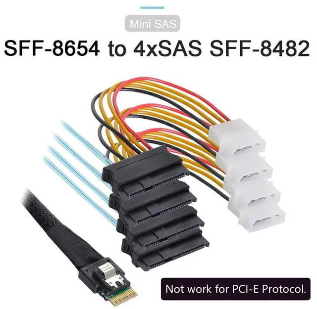 Slimline SAS 4.0 SFF-8654 4i 38pin Host to 4 SAS 29pin SFF-8654 Target Hard Disk Fanout Raid Cable