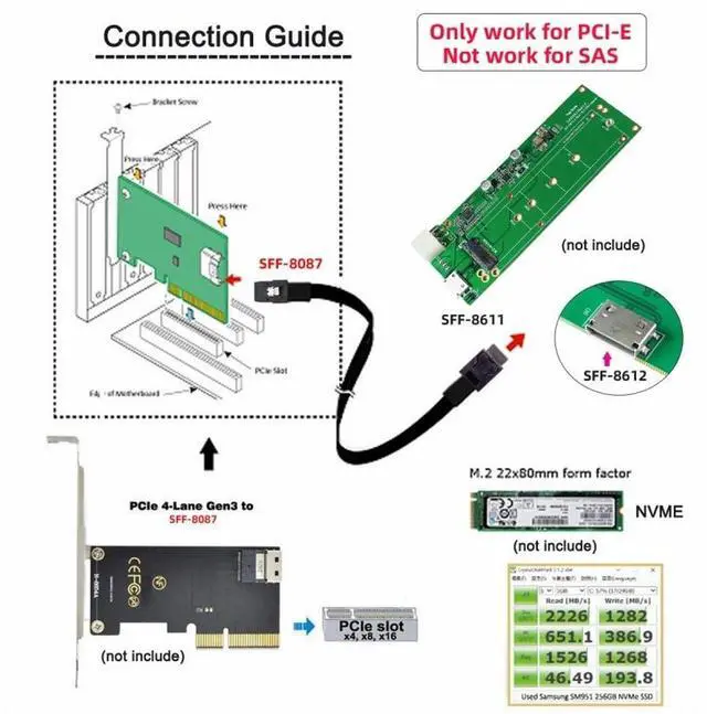 The cable only work for PCI-E, not work for SAS. OCuLink SFF-8611 male to SFF-8087 male