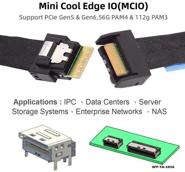 What is mini cool edge Io (MCIO): MCIO cables are designed for data center, networking and telecommunications markets that use SAS, PCIe, Ethernet and othersignal protocols.