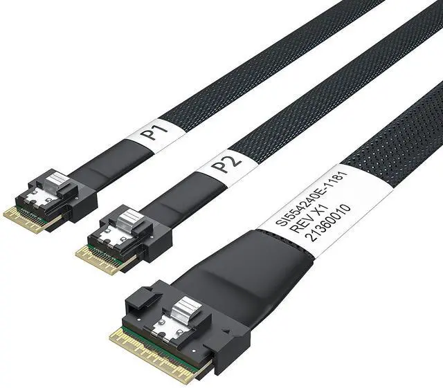SFF-8654 8i to 2x 4i SFF-8654 cable, Straight to Straight, 1m