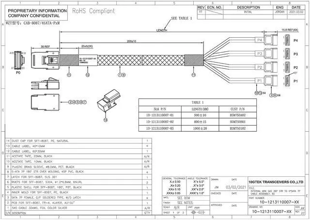 MiniSAS SFF-8087 Fan-Out Cable Breakout to 4xSATA, 6Gbps High-Speed Cable for RAID Controllers, Servers & Storage Enclosures, 0.5-m(1.6ft)