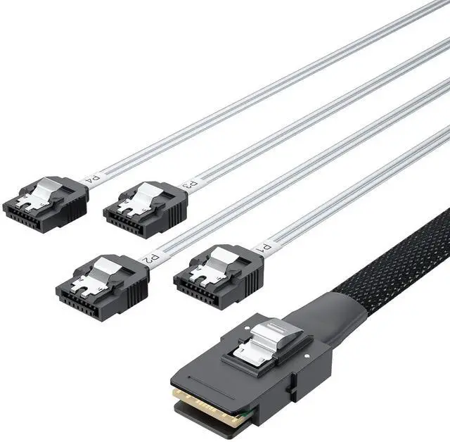 Product Description: Serial Attached SCSI (SAS) is a high-speed data storage interface designed for high-throughput and fast data access. Intended primarily for data storage centers, the SAS interface is backwards compatible with SATA. This allows the user to mix more expensive, lower-capacity SAS drives for applications that require faster data access and higher reliability, with lower-cost, higher-capacity SATA drives for applications with lower access speed requirements. Features: Connector A: 1 x 36 pin 4i Mini MultiLane SAS (SFF-8087) - male Connector B: 4 x 7 pin Serial ATA - female SAS Lane Qty: 4-Lane Data Rate: 6Gbps per channel AWG30 Twinaxial 8-pair high-bandwidth low-skew wire Impedance = 100 Ohms Crossover wiring High performance 8 pair wire construction Exceeds SAS 1.1 and SAS 2 SpecificationApplications: DATA Center Servers, Storage racks, RAID systems External Storage Systems SAS/SATA HBA interfaces Direct-attached storage (DAS) Switches