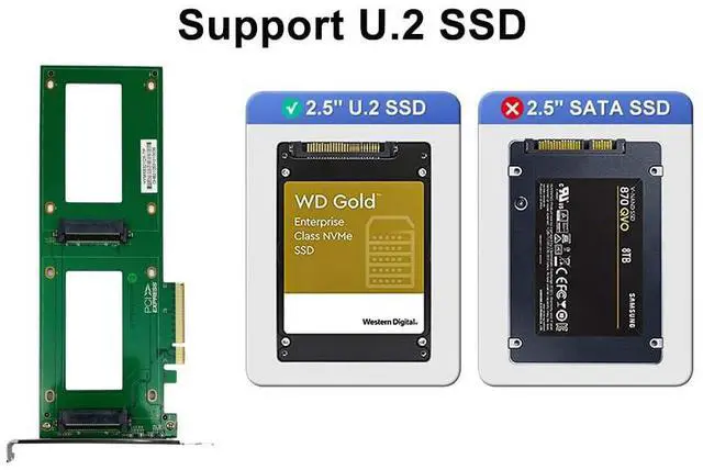 Dual U.2 (SFF-8639) to PCIe 4.0 x8 Adapter Card - Compatible with Servers/NAS/Desktop Storage Systems