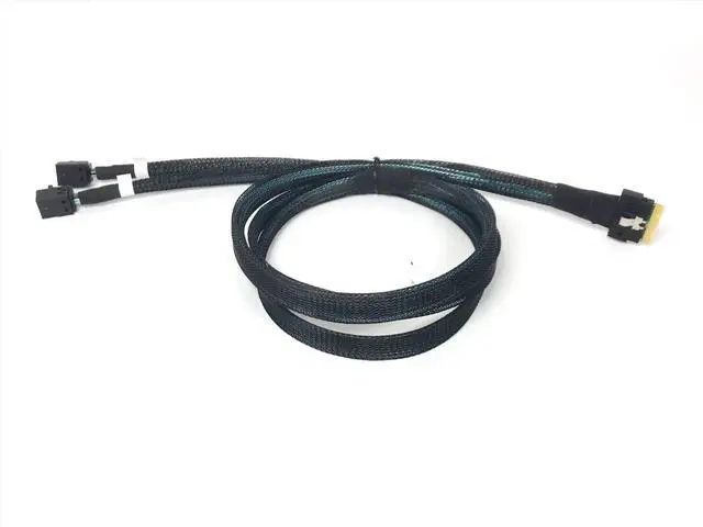 The SlimSAS 8i SFF-8654 cable with 2 x Mini SAS SFF-8643 connectors is a high-performance cable designed to connect storage devices such as hard drives and solid-state drives to a host system. It uses a slim and compact design, which allows for easy routing and flexibility in space-constrained environments. The cable features two Mini SAS SFF-8643 connectors, which provide a total of eight lanes of data transfer at speeds of up to 12 Gbps per lane. This enables the cable to support tri-mode SAS, SATA, and NVMe protocols, making it a versatile option for a variety of storage applications.