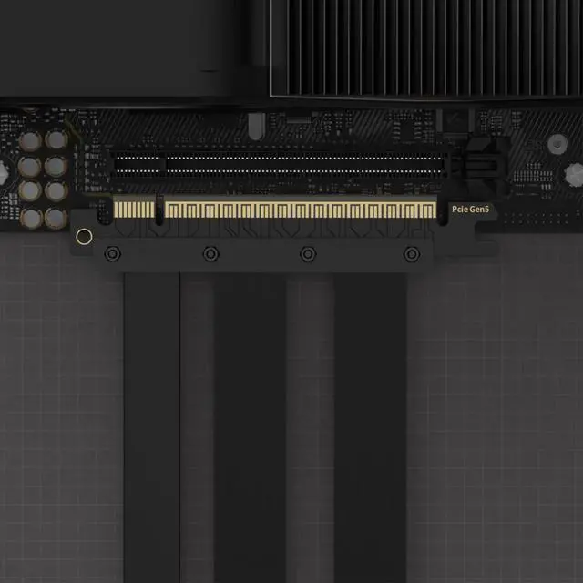 This PCIe 5.0 x16 riser cable delivers full 64GB/s bandwidth for next-gen GPUs, features EMI-shielded cabling for signal integrity, supports AI/GPU mining/workstation applications, and enables vertical GPU mounting with advanced thermal managementall in a flexible 200mm flat design.
