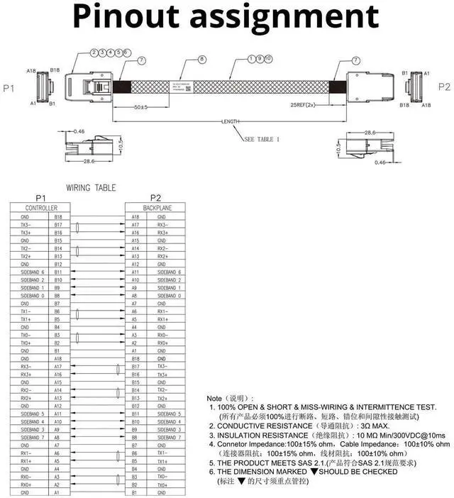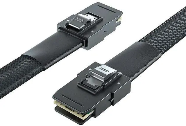 [Design]Both sides of the SFF-8087 cable are wrapped with an industrial-grade braided mesh jacket over individually shielded ribbon cable, a tape strain relief to protect the cable without creating rigidity, and a rugged 36-pin SFF-8087 connector with stainless steel Latch to ensure a secure connection.