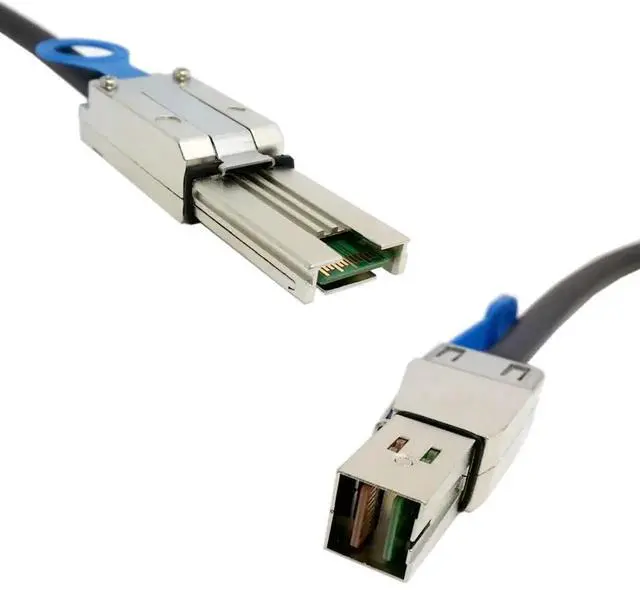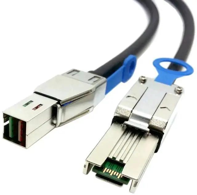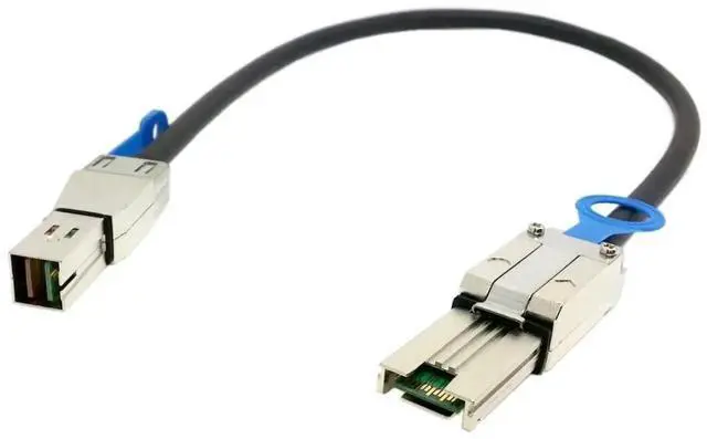 It is an external Mini Serial Attached SCSI HD x4 (SFF-8644) to Mini Serial Attached SCSI x4 (SFF-8088) cable.