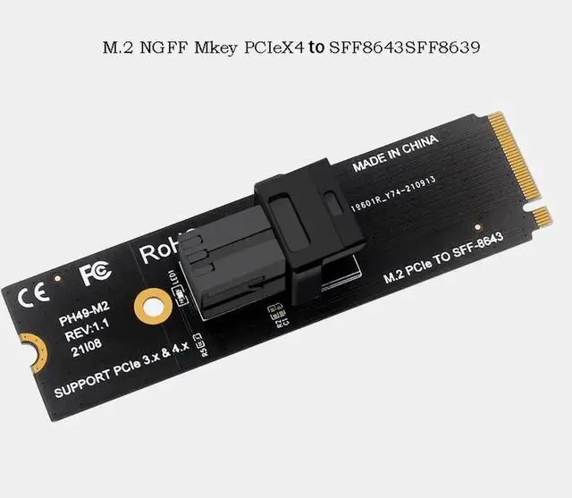 M. 2 NGFF Mkey PCIeX4 X8 x16 to SFF8643 SFF8639 Convert Card Extend Adapter PH49-M2 2280 PCIE 4.0 3.0 SSD Data Transfer Dongle