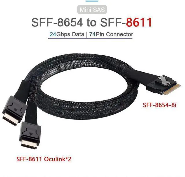 PCI-E Slimline SAS Slim 4.0 SFF-8654 8i 74pin to Dual Oculink SFF-8611 Cable 50cm PCI-Express