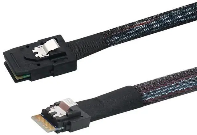 Vszerda 2PCS SFF-8654 to SFF-8087, Slim Line SAS 4.0 SFF-8654 4i 38 Pin Host to Mini SAS 4i SFF-8087 36 Pin Target Cable 1.6FT Black
