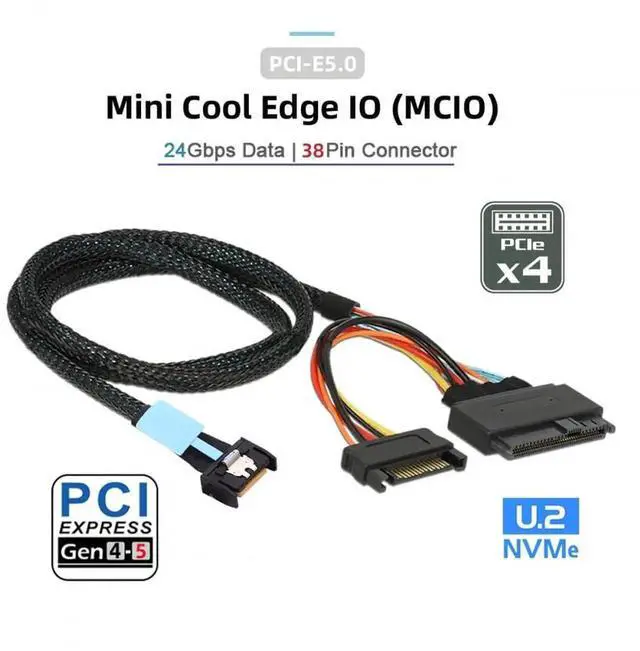 MCIO 4x Mini Cool Edge IO to U.2 SFF-8639 NVME PCIe PCI-Express Cable for Mainboard SSD