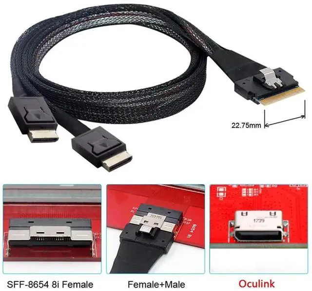 Meet PCIe Gen3/4 and SAS4.0 specification PCI-E Slimline SAS Slim 4.0 SFF-8654 8i 74pin to Dual Oculink SFF-8611 Cable 50cm PCI-Express