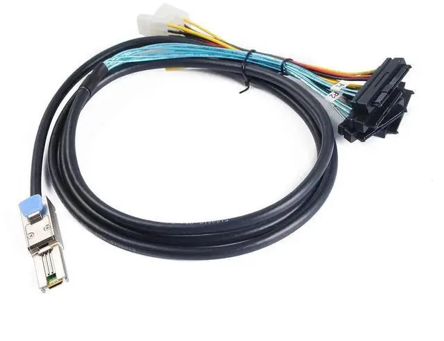 Mini SAS SFF-8088( 26 Pin) to 4x SFF-8482( 29 Pin) with extra 4 power cable, cable length 2M/6.6Ft