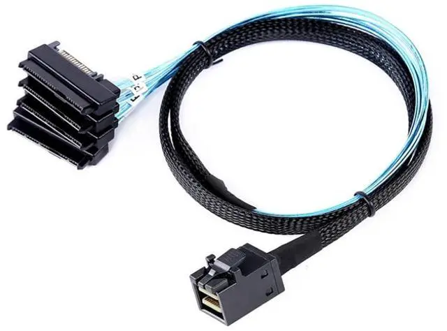 2-in-1 Combination:Mini SAS (SFF-8643) is host, 4 SAS 29 (SFF-8482) is target, internal Mini Serial Attached SCSI x4 (SFF-8643) to (4) x1 (SFF-8482) Serial Attached SCSI (controller based) fan-out cables, simplifying cable management and reducing bulk.