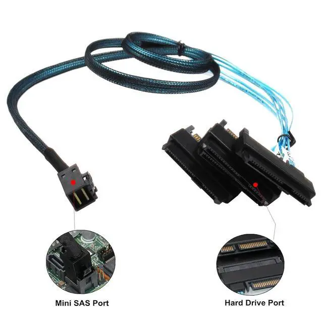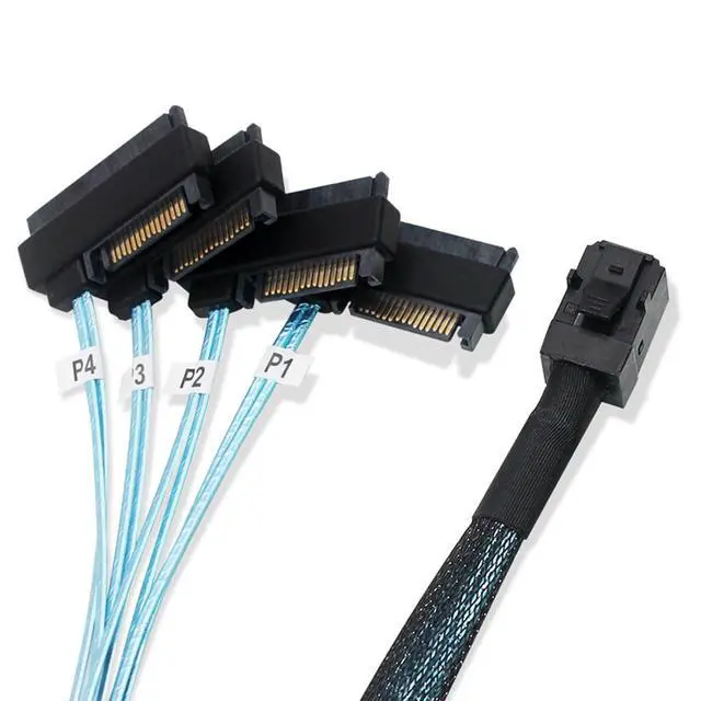 Mini SAS (SFF-8643) connect to the controller, 4 SAS connect to the HDD (hard disc driver)