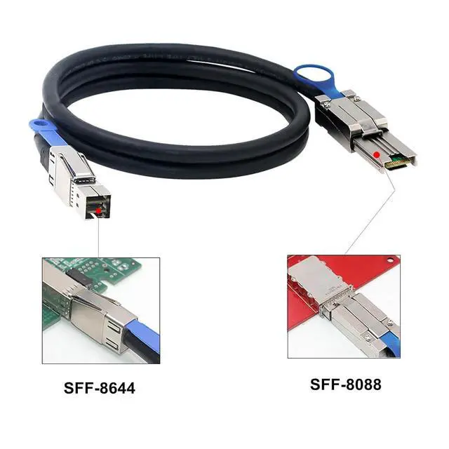 SFF-8644 to SFF-8088 Cable2-Meter(6.6ft) length, Twinaxial 8-pair high-bandwidth, transmission rates Up to 6Gbps per channel, low-skew, Impedance = 100 Ohms, AWG30.