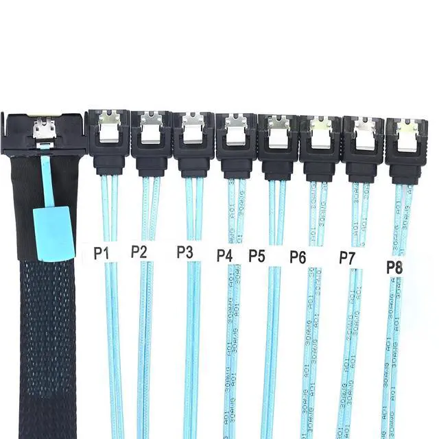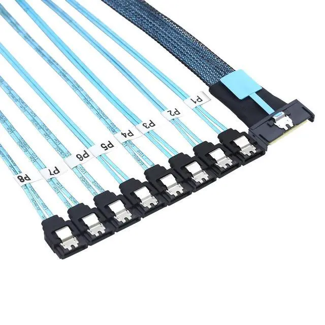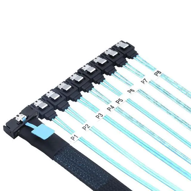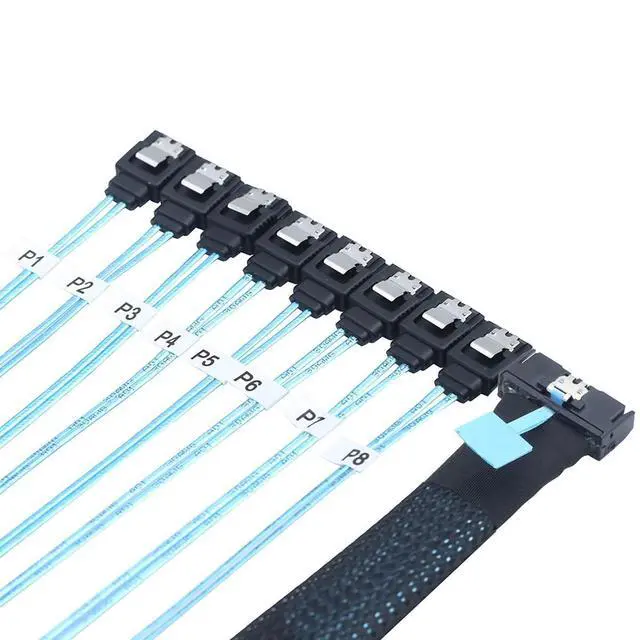 MCIO PCIe SAS SFF-8654 8i to 8x SATA Cable Connects one SAS controller to eight SATA hard drives.