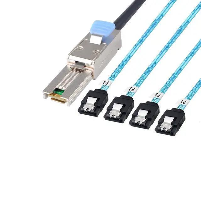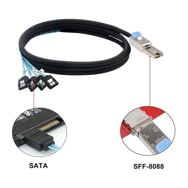 Mini SAS guarantees performance at 3.0 Gigabits per second. This SAS cable features Mini SAS type SFF-8088 connectors and Internal SATA connectors. This cable connects a to SFF-8088 Mini SAS Controller directly to 4 SATA drives.