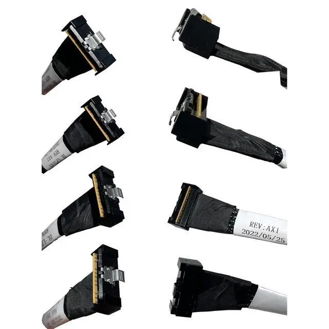 Features and Benefits: 1.Smaller size connector and cable saves device space. 2.Provide four channels signal transmission as per industry standard. 3.Data speed: 24Gbps for SAS and 8GT/s for PCIe per channel. 4.Meet SAS4.0, Ultraport SlimSAS SFF-8654 specification.