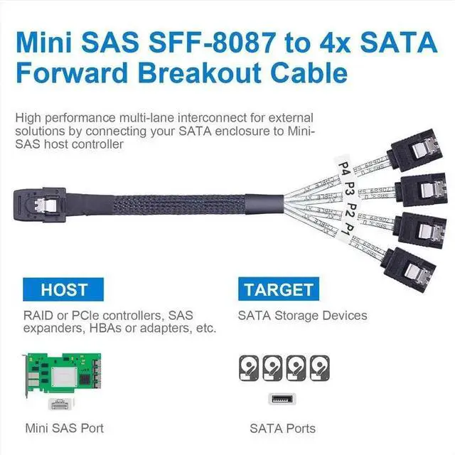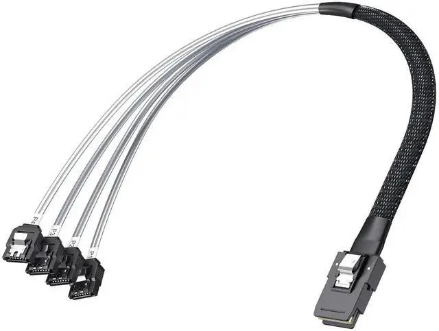 MiniSAS SFF-8087 Fan-Out Cable Breakout to 4xSATA, 6Gbps High-Speed Cable for RAID Controllers, Servers & Storage Enclosures, 1-m(3.3ft)