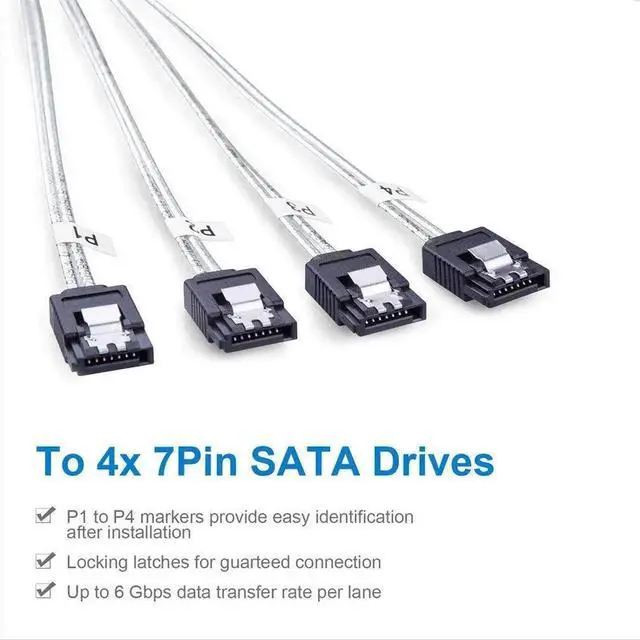 Internal Mini SAS SFF-8087 to 4 SATA Cables, 1 meter (3.3ft)