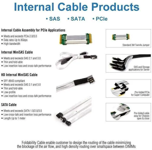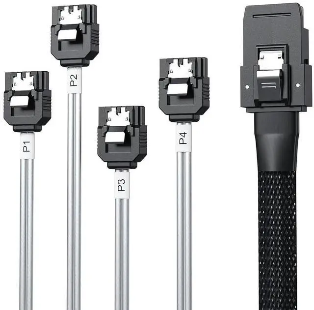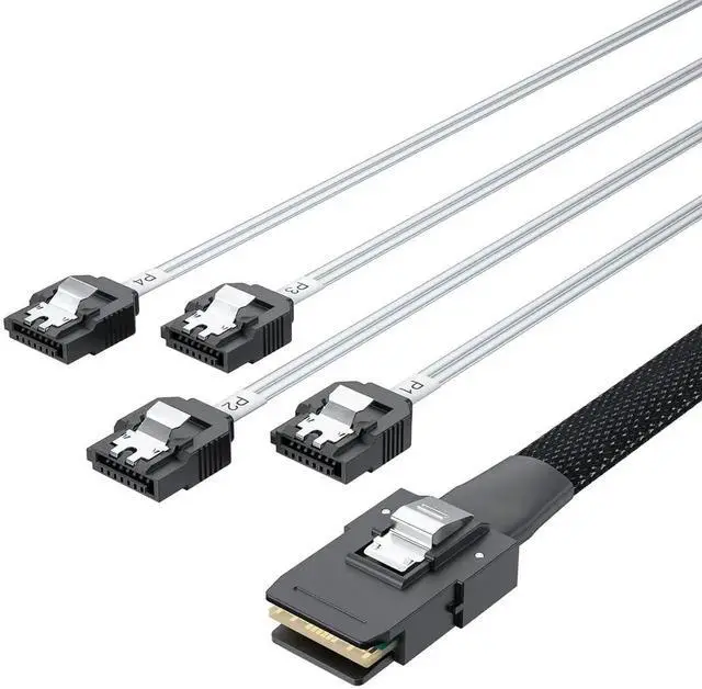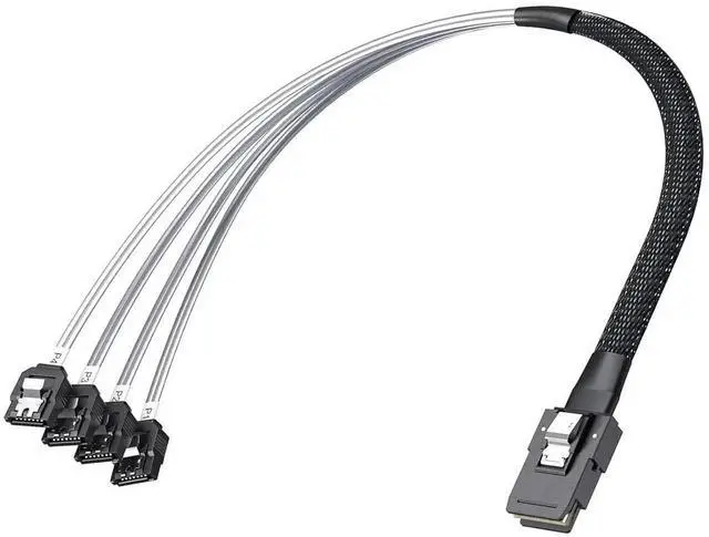 Product Description: Serial Attached SCSI (SAS) is a high-speed data storage interface designed for high-throughput and fast data access. Intended primarily for data storage centers, the SAS interface is backwards compatible with SATA. This allows the user to mix more expensive, lower-capacity SAS drives for applications that require faster data access and higher reliability, with lower-cost, higher-capacity SATA drives for applications with lower access speed requirements. Features: Connector A: 1 x 36 pin 4i Mini MultiLane SAS (SFF-8087) - male Connector B: 4 x 7 pin Serial ATA - female SAS Lane Qty: 4-Lane Data Rate: 6Gbps per channel AWG30 Twinaxial 8-pair high-bandwidth low-skew wire Impedance = 100 Ohms Crossover wiring High performance 8 pair wire construction Exceeds SAS 1.1 and SAS 2 SpecificationApplications: DATA Center Servers, Storage racks, RAID systems External Storage Systems SAS/SATA HBA interfaces Direct-attached storage (DAS) Switches