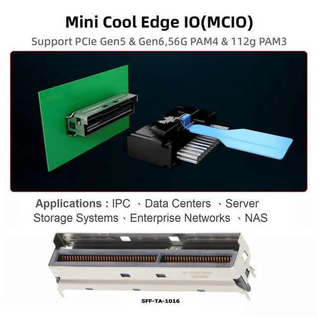 MCIO products offer data transmission rates of up to 64Gbps, meeting PCIe Generation 6 specifications. These robust mechanical connectors are designed to protect the connector pins and ensure proper alignment during assembly for consistent signal integrity.