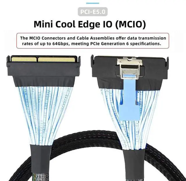 What is mini cool edge Io (MCIO): MCIO cables are designed for data center, networking and telecommunications markets that use SAS, PCIe, Ethernet and othersignal protocols.
