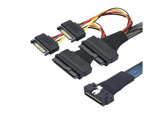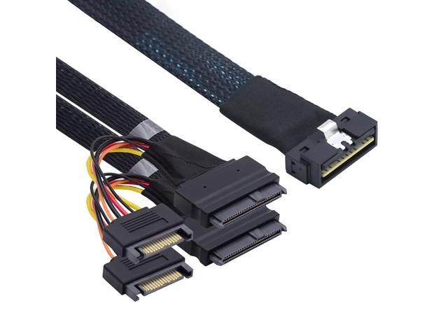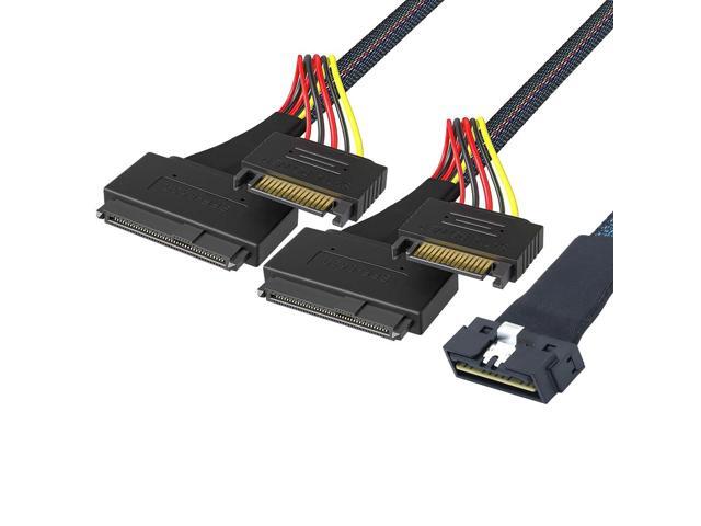 LP Low Profile SFF-8654 8i 74Pin to Dual SFF-8639 U.2+15Pin Cable 32AWG High-Speed Server Interconnect (0.5M)