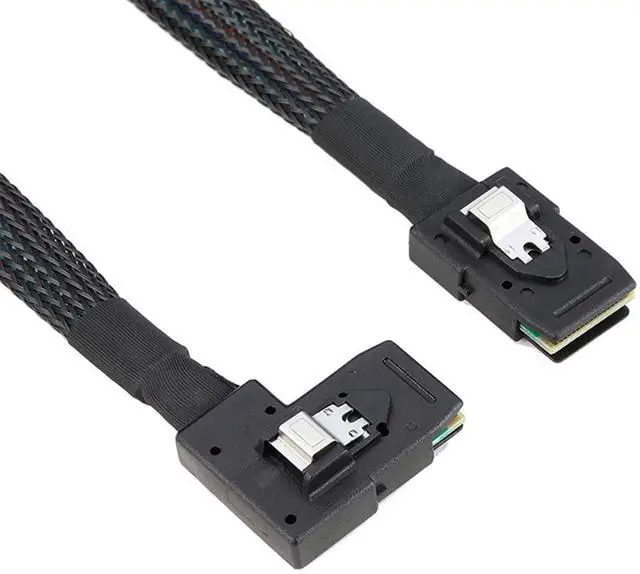 Straight-to-Left-Angle Design Features a straight Mini SAS 8087 connector on one end and a left-angle SFF-8087 connector, saving space and simplifying cable management in compact server racks.