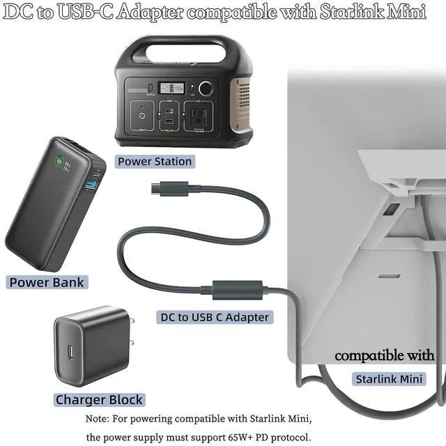 Compatible with Starlink MiniDesigned for Mini satellite systems. Converts USB-C PD power to DC5521 female for seamless connection with compatible power cables.