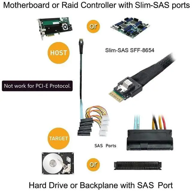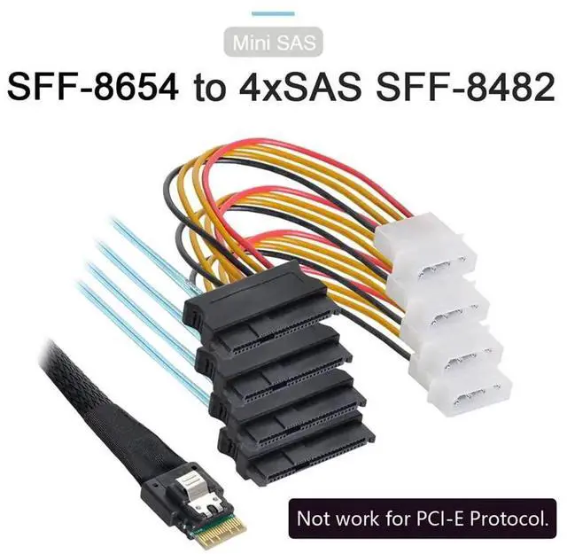 Slimline SAS 4.0 SFF-8654 4i 38pin Host to 4 SAS 29pin SFF-8654 Target Hard Disk Fanout Raid Cable