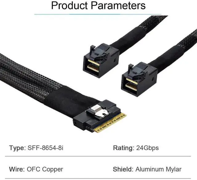 3.Data speed: 24Gbps for SAS and 8GT/s for PCIe per channel 4.Meet SAS4.0, Ultraport SlimSAS SFF-8654 specification