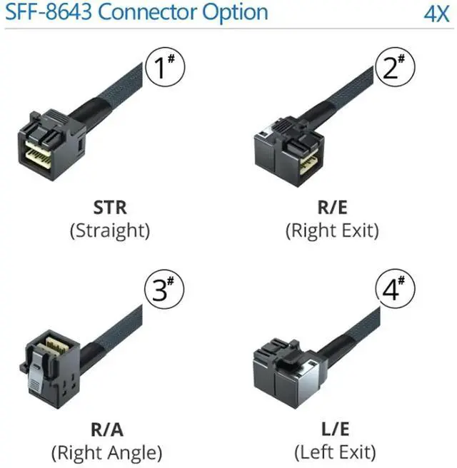 The new SFF-8643 connector uses less PCB real estate and allows higher port density for internal hosts and devices. Provides point data transfer speeds up to 6 Gbit/s.