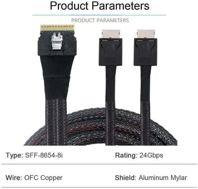 3.Data speed: 24Gbps for SAS and 8GT/s for PCIe per channel 4.Meet SAS4.0, Ultraport SlimSAS SFF-8654 specification