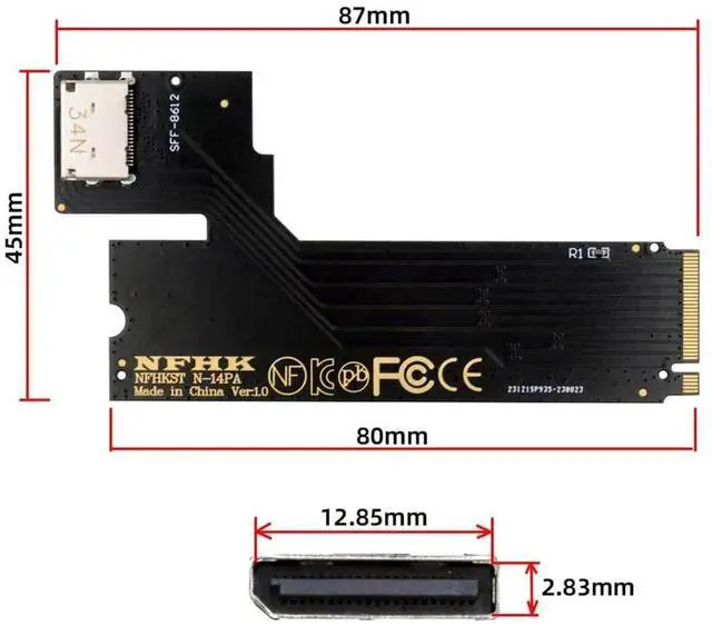 • Connectors: 1 x OCuLink SFF-8612 female, 1 x 67 pin M.2 Key M male