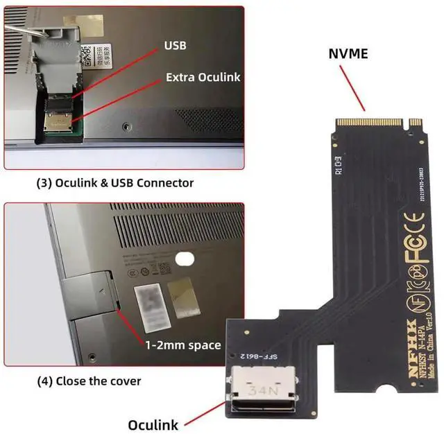JAENFONG PCI-E 4.0 4X NVMe M.2 M-Key Male to Oculink SFF-8612 SFF-8611 Host Adapter for 2022 2023 ThinkBook 14+ SSD & External Graphics Card