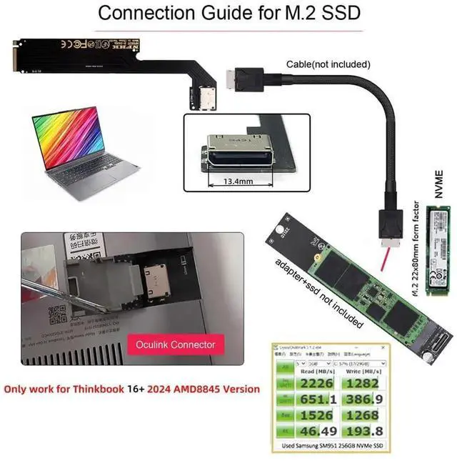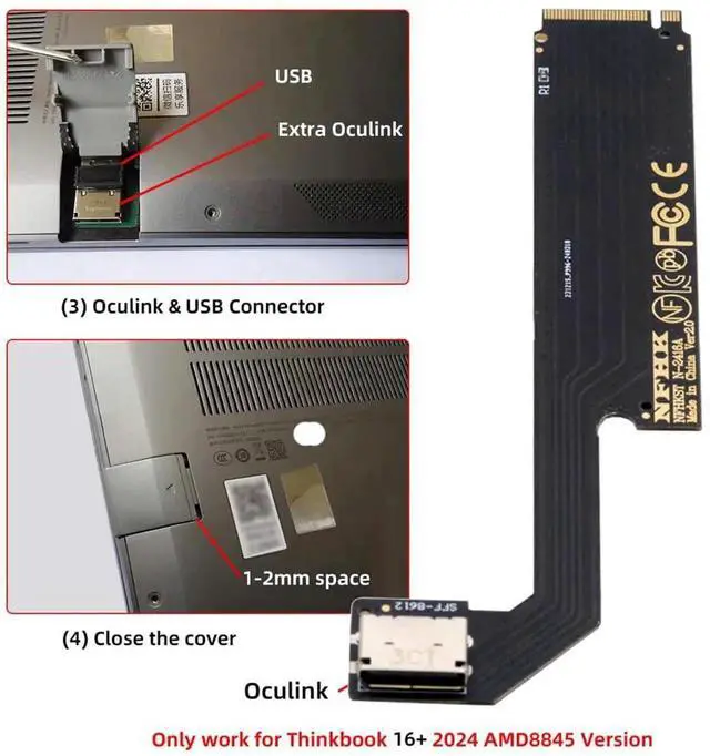 JAENFONG PCI-E 4.0 4X NVMe M.2 M-Key to Oculink SFF-8612 SFF-8611 Host Adapter for 2024 ThinkBook 16+ AMD8845 External Graphics Card & SSD