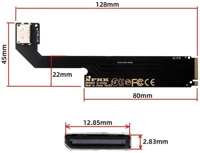 1. Connectors: 1 x OCuLink SFF-8612 female, 1 x 67 pin M.2 Key M male