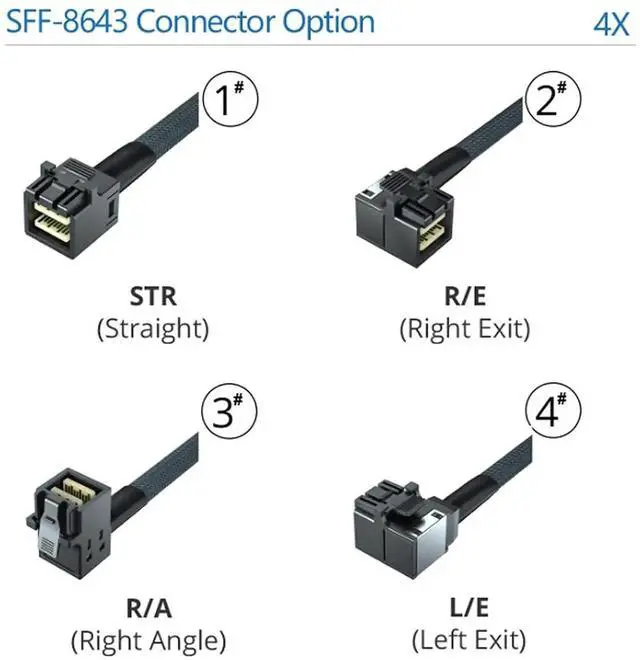 Supports data rates up to 12 Gbps per lane, compliant with SAS 3.0 standards. It is specifically used to connect SAS controllers and devices, ensuring reliable and high-speed data transfer. Backward compatible with earlier SAS generations (SAS 2.0, SAS 1.0) for flexible integration.